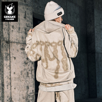 GENANX闪电潮牌新款美式街头基础印花360g重磅开衫连帽夹克外套男