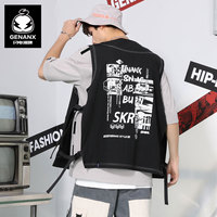GENANX闪电潮牌马甲2022夏季街头工装风不规则版型多口袋印花马甲